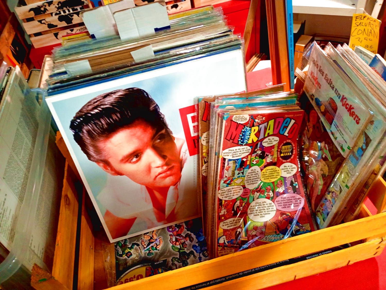Tienda de coleccionismo y vintage con muchísimos libros, comics, discos y objetos retro de colección