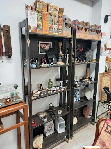 Preciosa tienda de minerales, esoterismo, y terapias alternativas (aromaterapia, cristales) con también libros muy interesantes. Su propietaria es bruja de verdad, tener cuidado y respetadla ¡Es sabia y no hay que hacerla enfadar! ¡Tiene hasta canas de verdad, por éso es bruja!