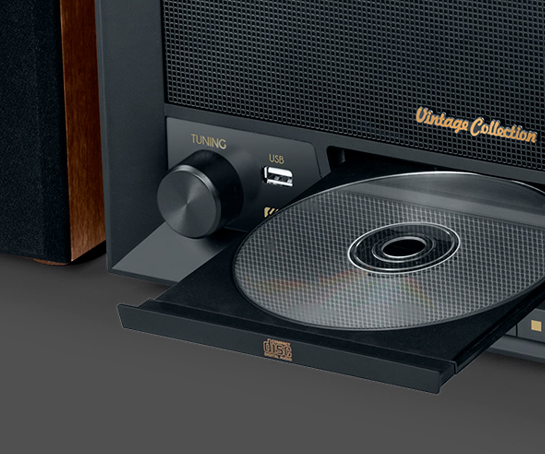 | SPECS | Transmite música de otro Dispositivo compatible con Bluetooth como Laptop Tableta o teléfono inteligente Radio FM con 20 estaciones preestablecidas Puerta de CD tipo cajón CD, CD-R / RW Compatible Gabinete de madera Turntable estéreo de 3 velocidades 33/45/78 RPM Puerto USB para reproducción y codificación Interruptor de encendido / apagado automático Adaptador de registro de 45 RPM Sistema de altavoces bidireccional 2 x 20W de potencia de salida |