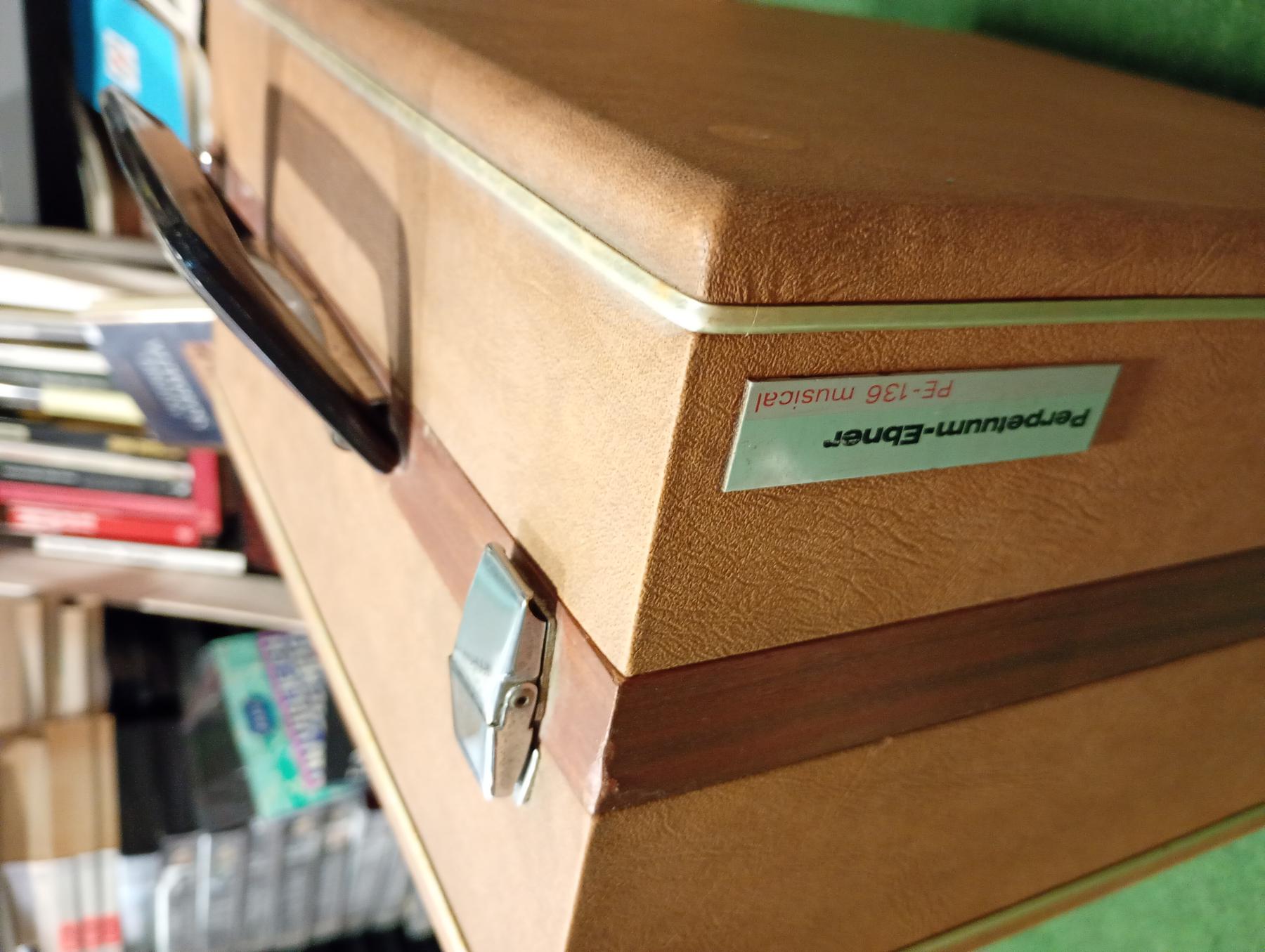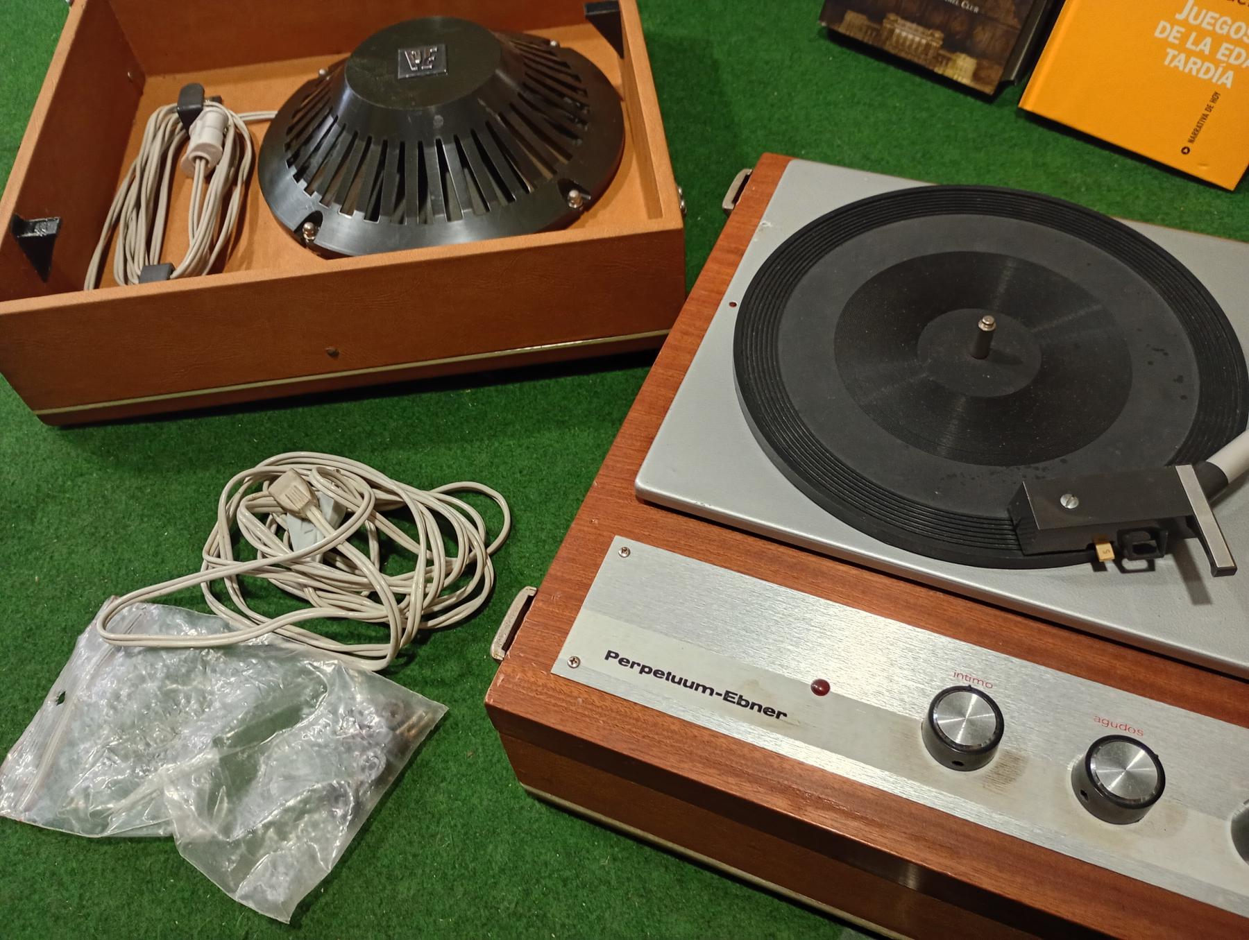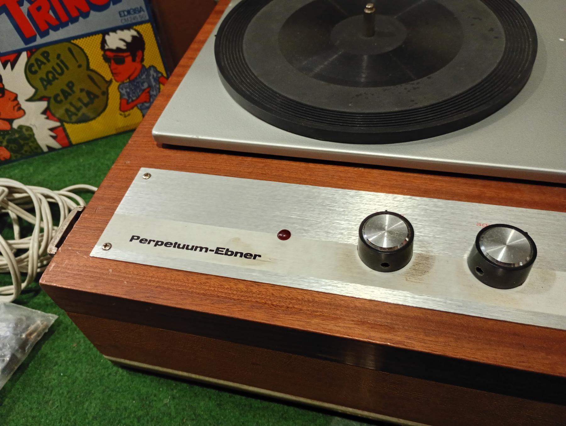 Tocadiscos maleta de madera vintage de Perpetuum Ebner, una compañía alemana con una larga historia en la fabricación de tocadiscos y equipos de audio de alta calidad, especialmente activa desde mediados del siglo XX. Los modelos de Perpetuum Ebner (a menudo abreviados como PE) eran conocidos por su robustez, su ingeniería de precisión y su fiabilidad.